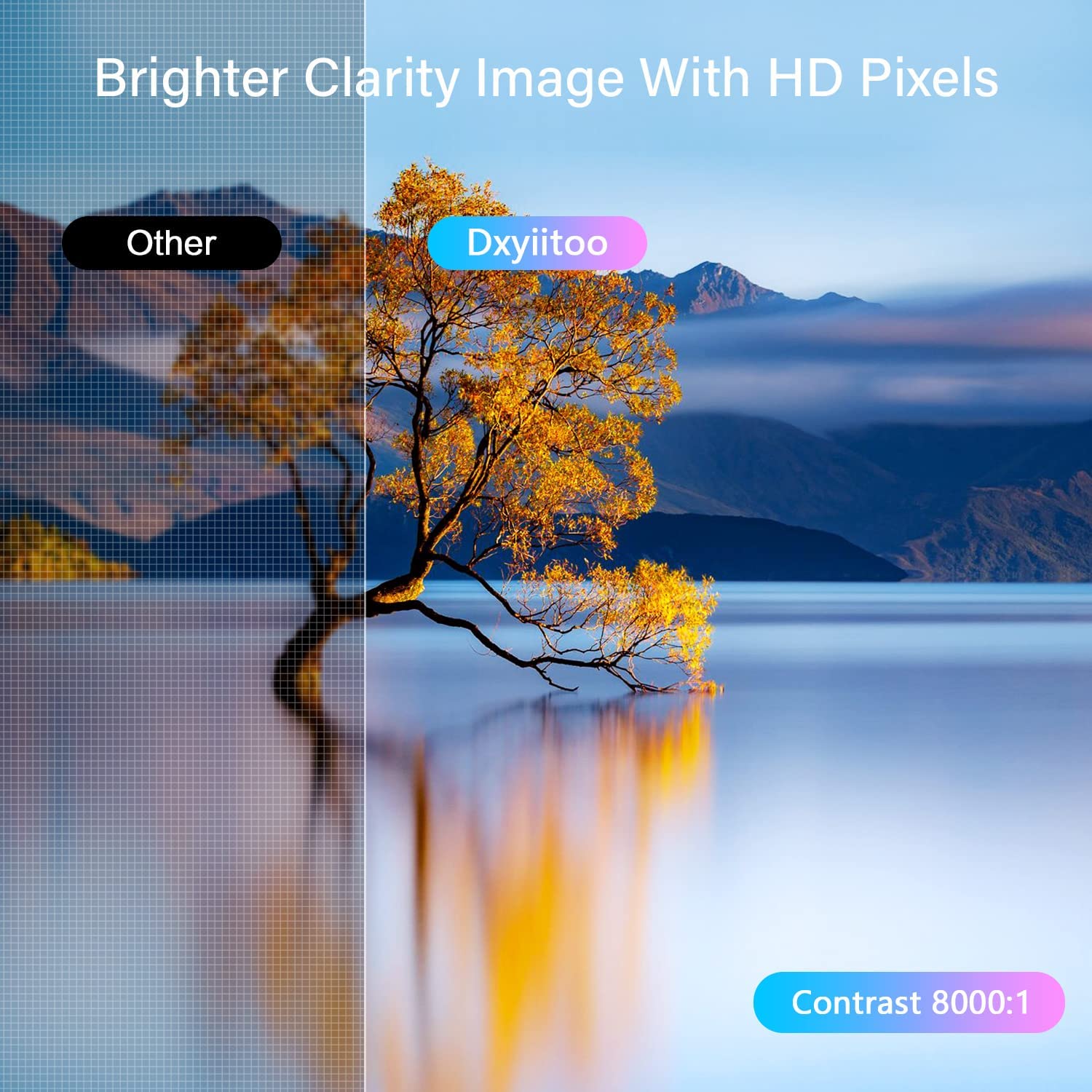 Contrast is the amount of difference between the darkest and brightest areas of a picture. A projector with a high contrast ratio provides clearly shadow detail and deep black levels, adding a sense of depth and dimension to the picture. When you compare the Dxyiitoo projector with other portable projectors, you will find the image of our projector is more conspicuous and clearer, and the color is more vivid and bright.