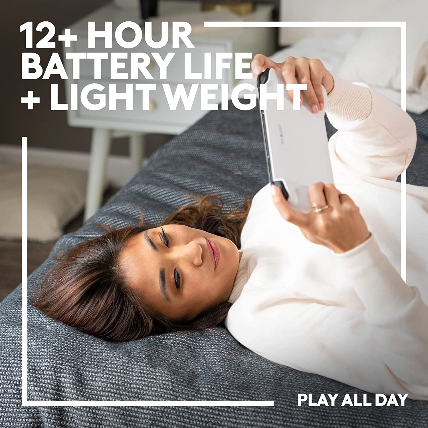 - Handheld: 12+ hour battery life (1) and ridiculously lightweight portable gaming system at 463 g you can comfortably play all day