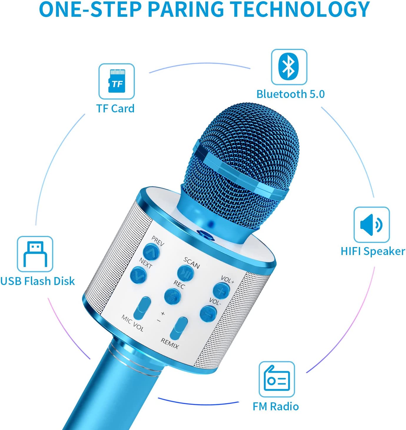 【Amazing Gifts】Beautiful appearance, comfortable feel, suitable for kids and adults. Perfect for KTV singing, gathering singing, family singing, travel singing, car stereo, instrument recording, interviews and live, etc. GIFTMIC Bluetooth microphone is a great gift to bring surprises and joy.