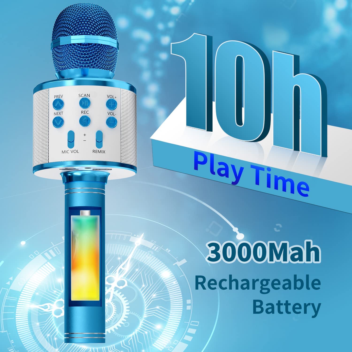 【Long Playback Time】Built-in 3000mAh rechargeable battery, this Bluetooth karaoke wireless microphone can last 10 hours of continuous use in a full charger.