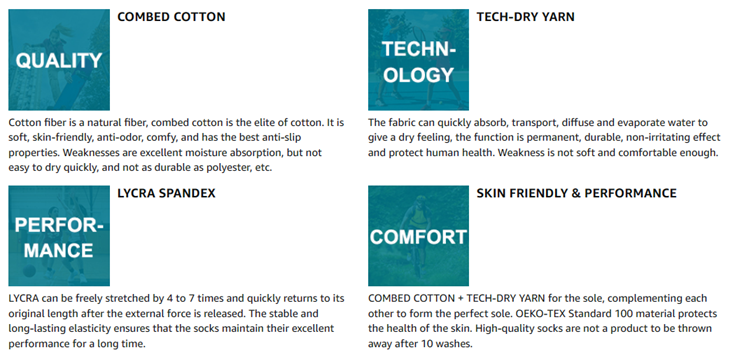 About Moisture-Wicking: There is a limit to the moisture wicking ability of socks, and if this limit is reached, drying is required to restore performance. Please feel free to explore and we look forward to hearing from you.