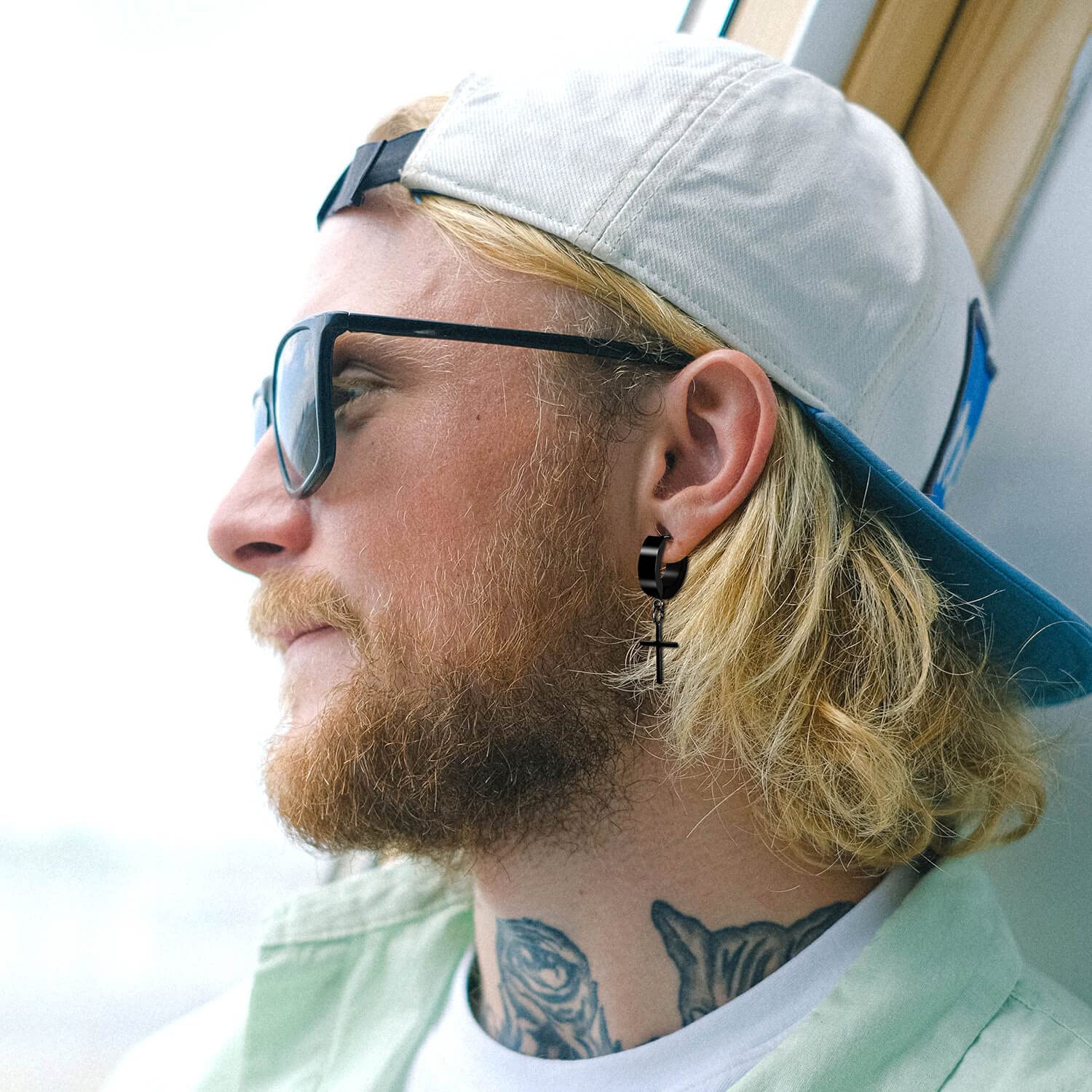 Earring Set Include - 15 pairs of men's earrings and ear studs come with a beautiful box, 4 pairs of circle earring hoops, 3 pairs of black dangle-hinged hoop earrings, and 8 pairs of different shapes of black ear studs. More wearing choice, suitable for men and women.
