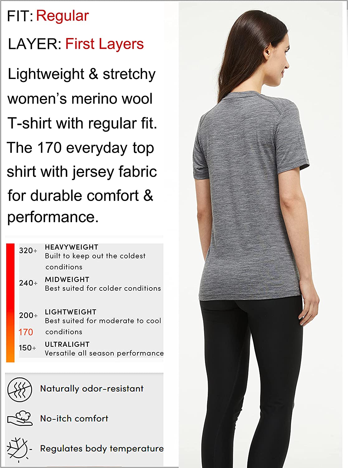 • FABRIC: 160g/m Lightweight Merino WooI, 95% Merino Wool, 5% Spandex Breathable Anti-odor.