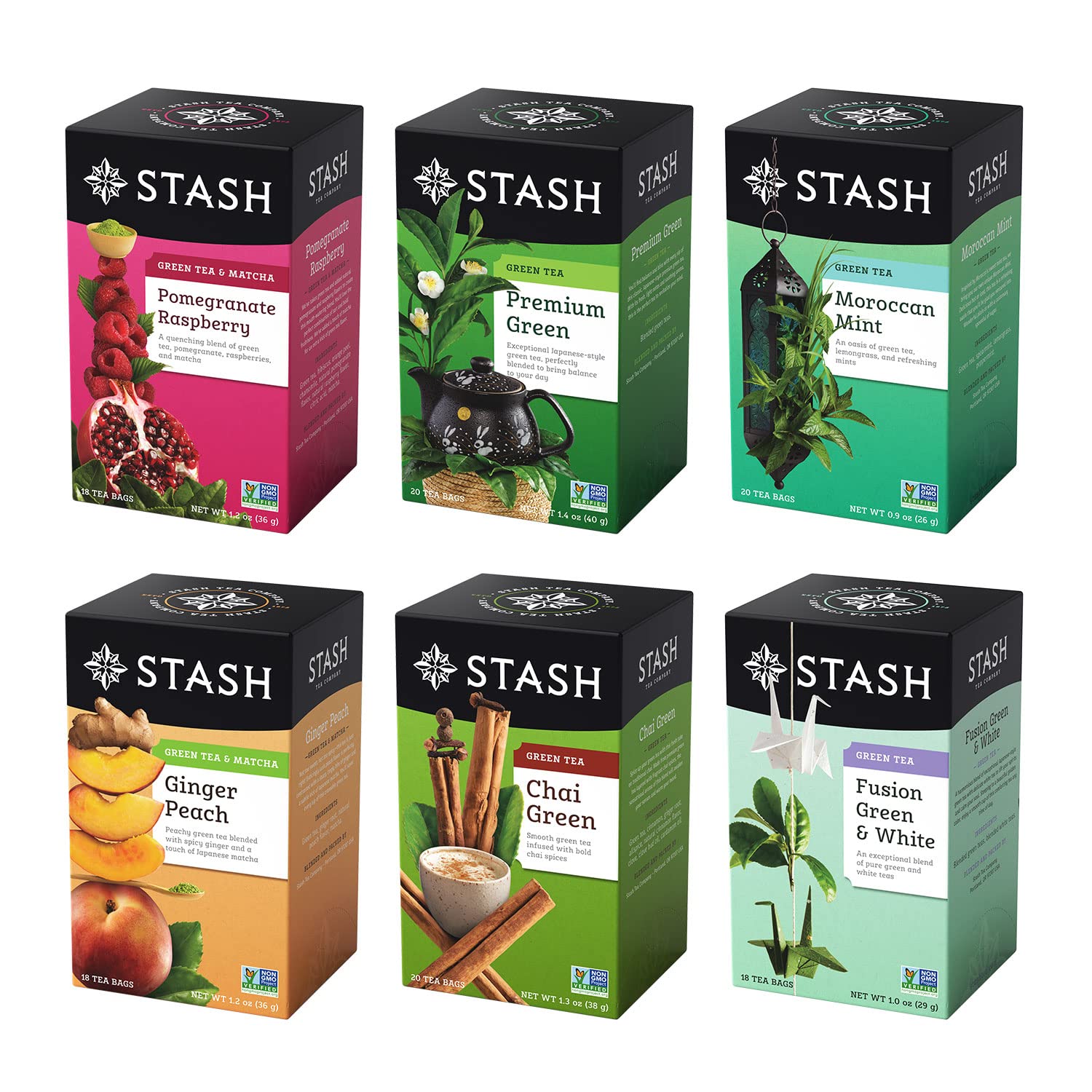 Stash Tea Green Tea Variety Pack Sampler Assortment - Caffeinated, Non-GMO Project Verified Premium Tea with No Artificial Ingredients, 20 Count (Pack of 6)