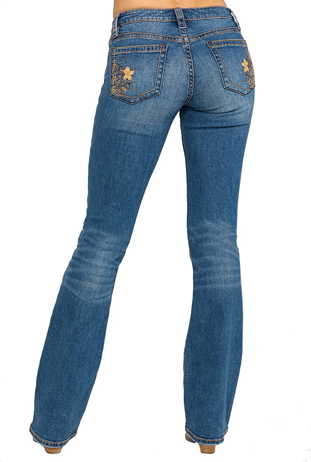 Bootcut Jeans for Women Fit Embroidered Washed Jean Denim Pants