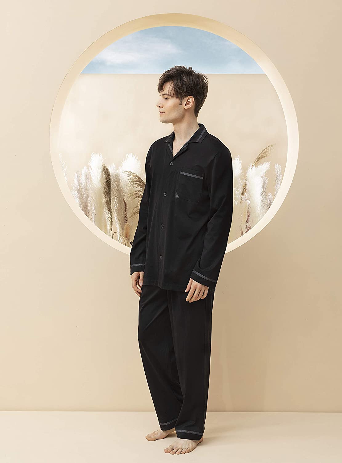 Two-side Pockets: Roomy enough to hold your phone and wallet when it is necessary, the best choice classic long pajama set for men