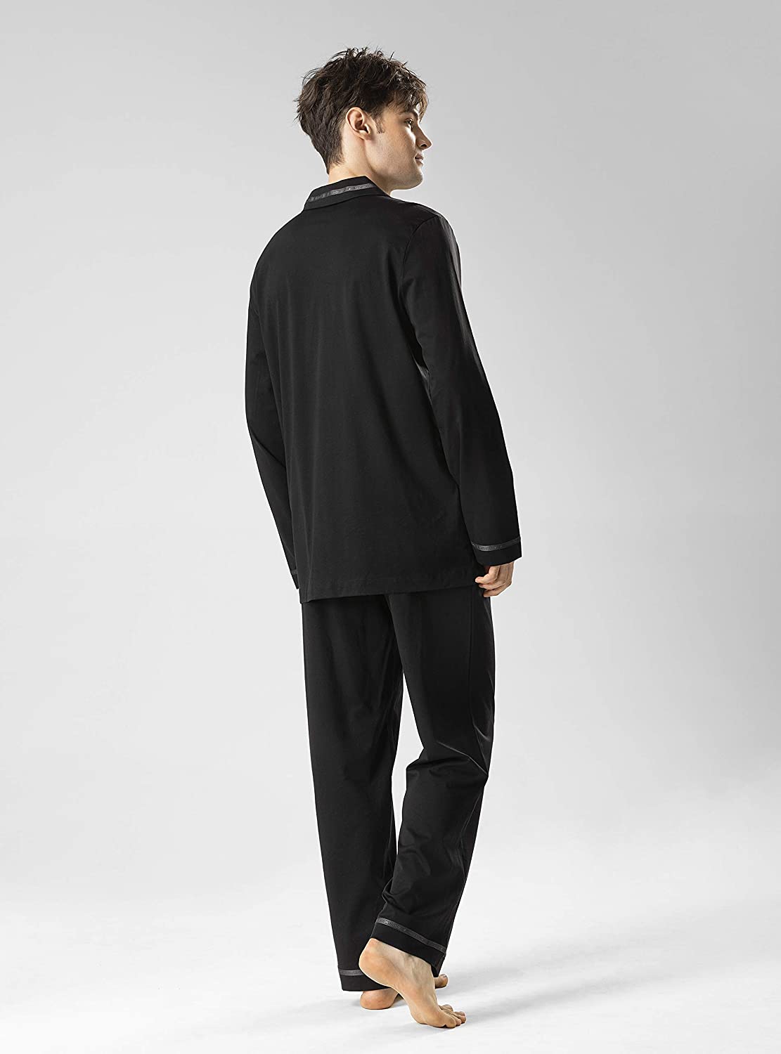 Simple Contrast Design: The highlights the neckline cuffs and bottoms with twill contrast,adhere to the "simple yet stylish, simple yet trend" as the men's pajama set design