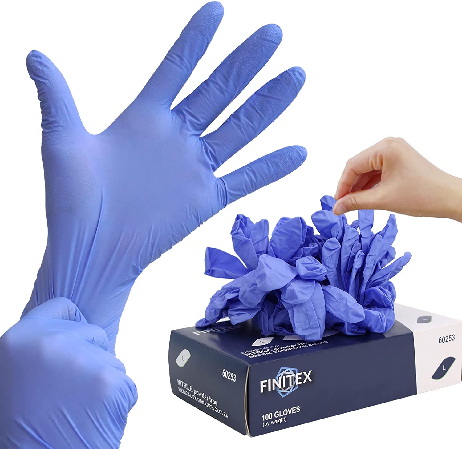 【Comfortable Fit & Safer】 Our FINITEX blue purple nitrile medical exam gloves thick and stretchy so they don't rip or tear easily, these disposable rubber gloves go on easy to wear and take off. They can also be used with phone touch screens. Moreover,Latex-free Powder-free, these non-latex gloves will more safer. For single use only.