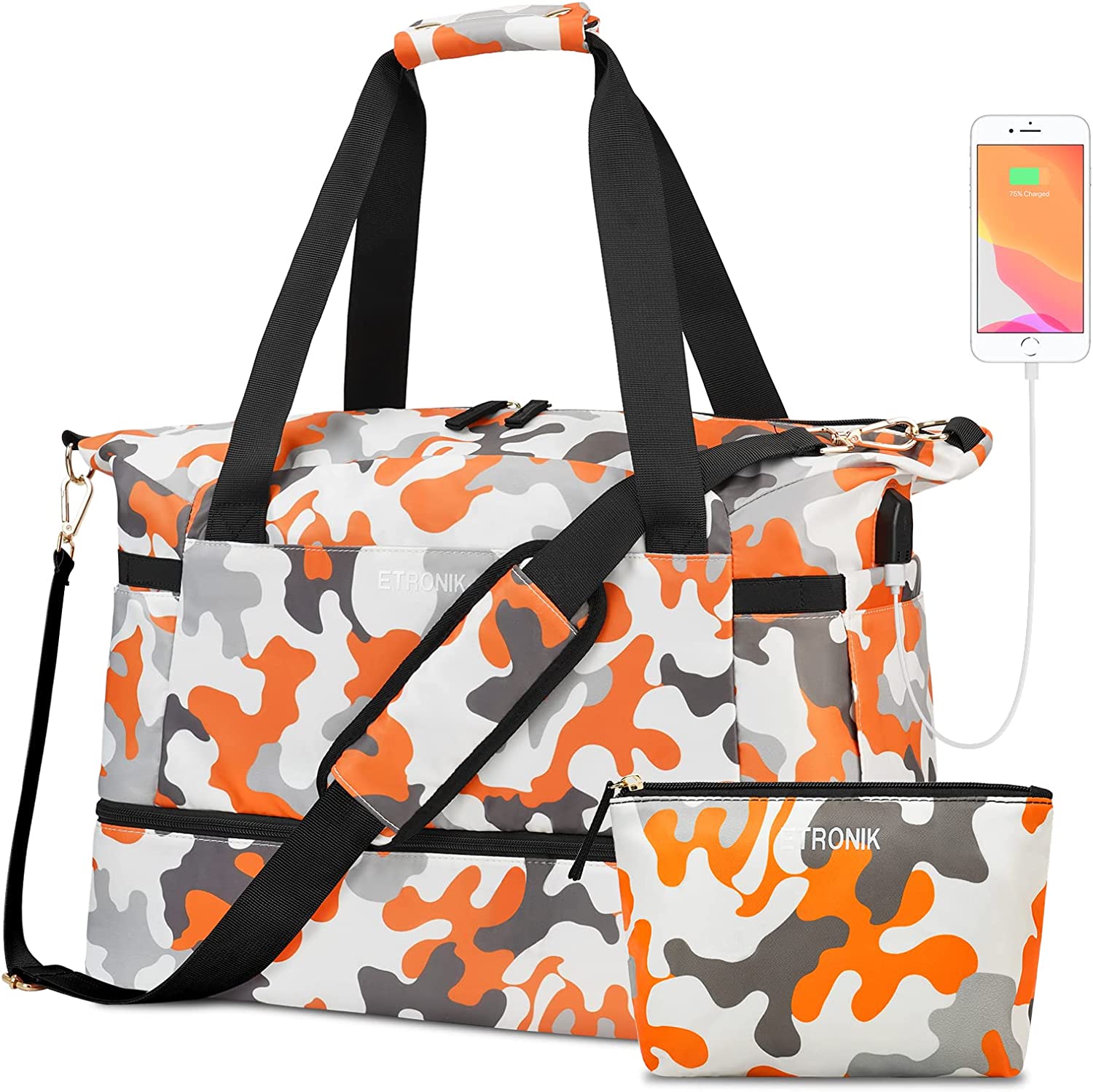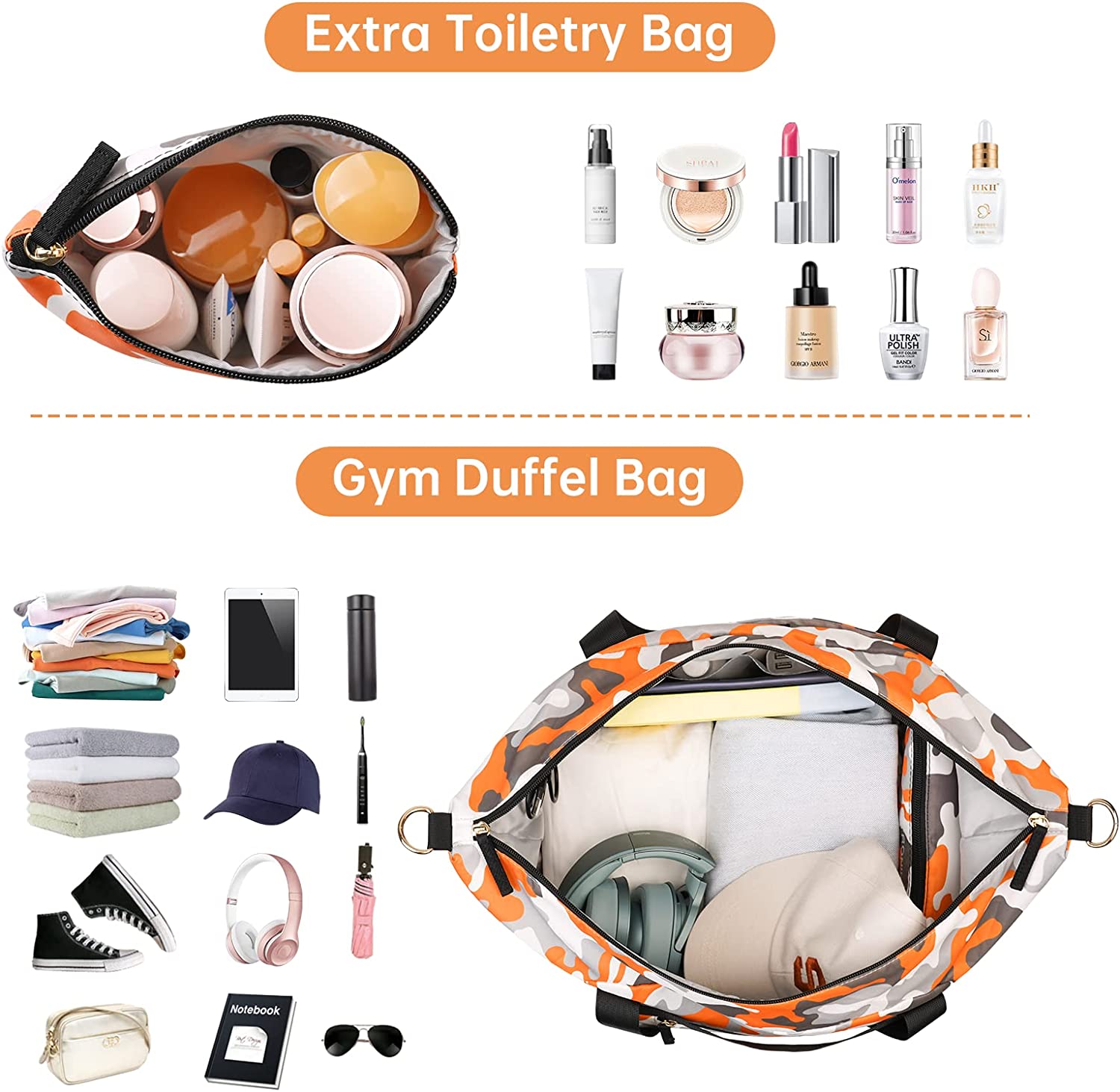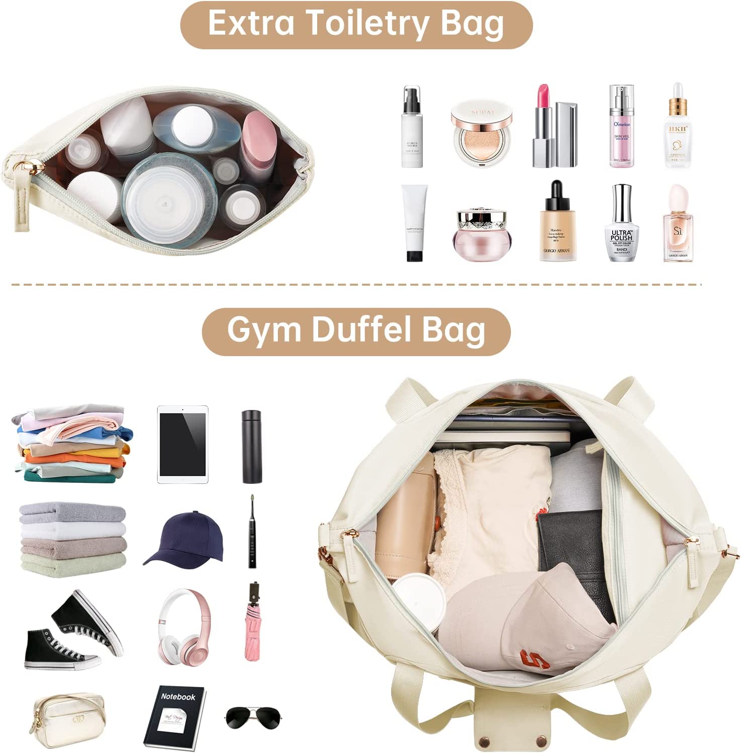 • ✅【Dry Wet Separate Duffel Bag】:This duffle bag for women delivers roomy main compartment to store your clothes and items. A zippered waterproof PVC lined pocket for wet clothes or towels and swimsuits. In addition, this travel duffel bag also gives an extra small makeup bag for easy storage.