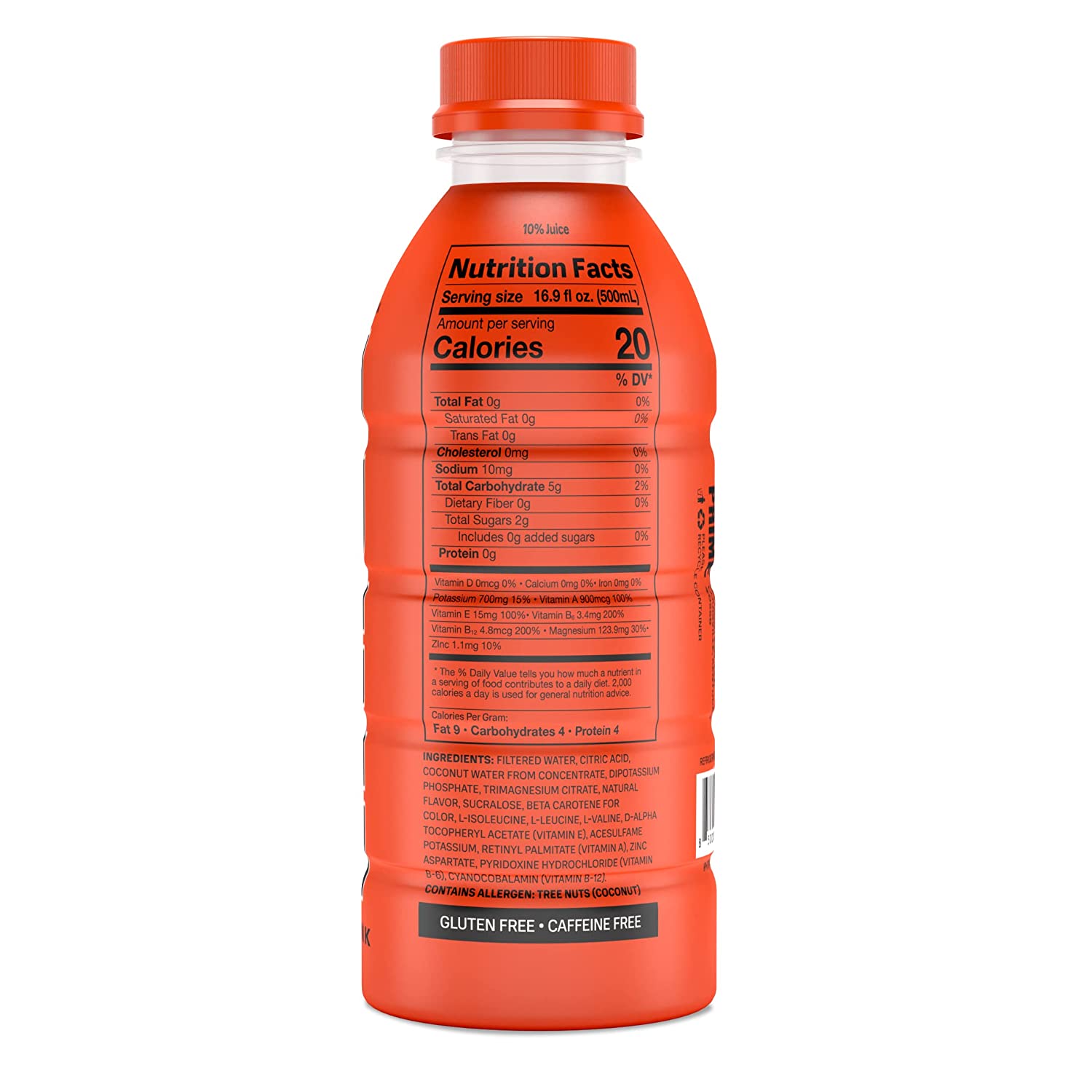 Prime Hydration Drink Sports Beverage "ORANGE," Naturally Flavored, 10% Coconut Water, 250mg BCAAs, B Vitamins, Antioxidants, 835mg Electrolytes, Only 20 Calories per 16.9 Fl Oz Bottle (Pack of 12)