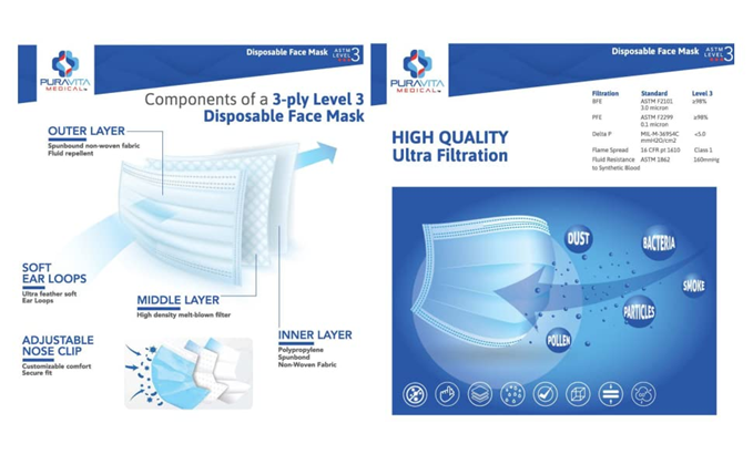Filter Efficiency ≥ 98% - 3 layered construction filters at least 98% of airborne particles