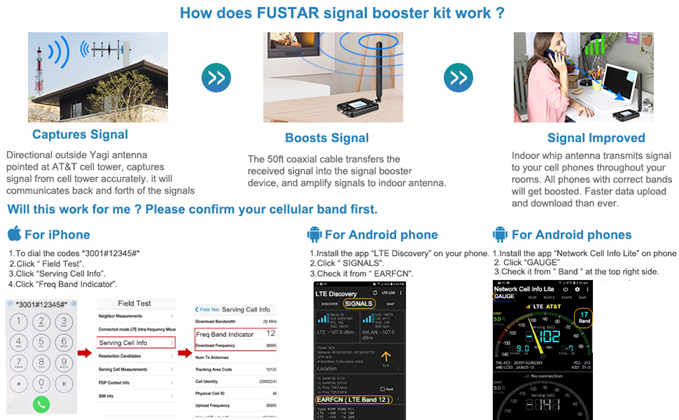 The cell phone booster at&t signal booster works for All North American Users. The att cell phone antenna booster kit can solve the cellular Poor Cell Reception Problem.