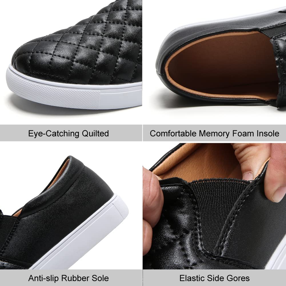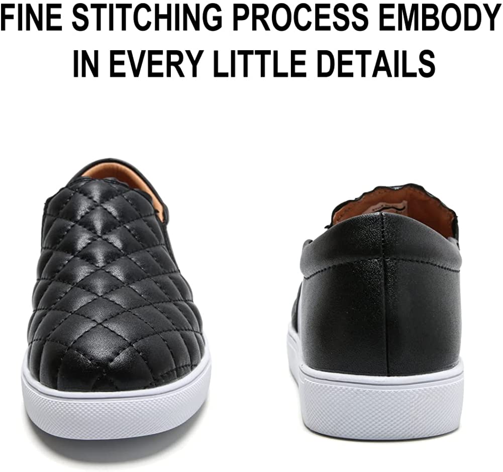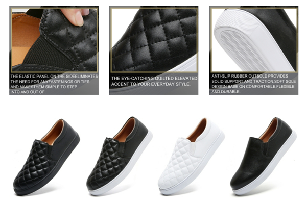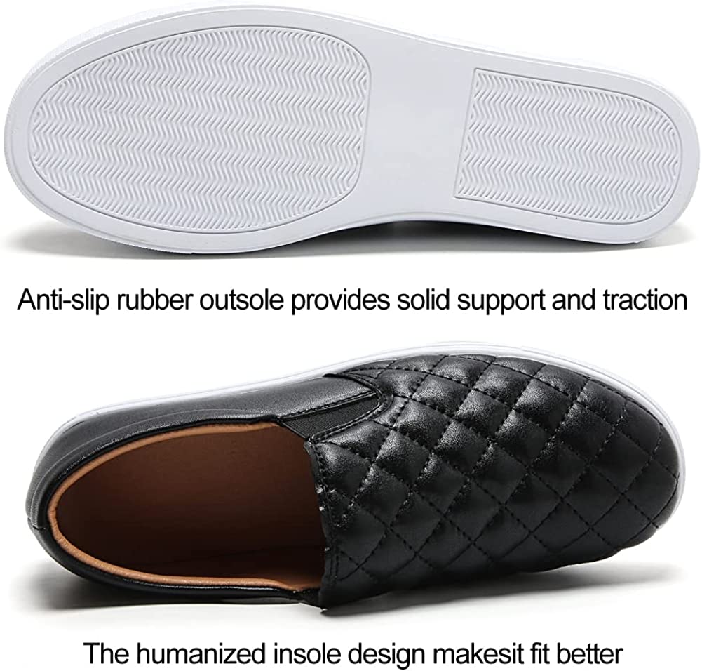 • [PREMIER MATERIALS]: Slip on shoes for women comfortable are made of leather upper with with quilted pattern decorating. Leather lining and memory foam insole. Lightweight and non-slip rubber sole.