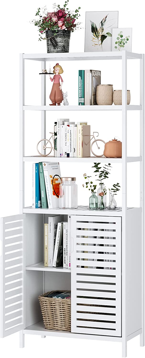 AMPLE STORAGE SPACE: This bathroom storage cabinet is an integrated cabinet with 4 open shelves and a double-door storage cabinet that provide ample storage space for your daily