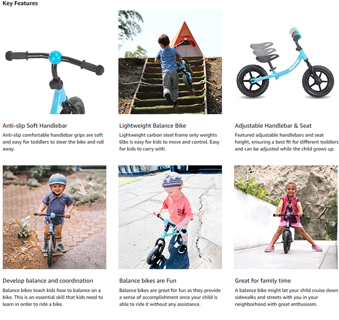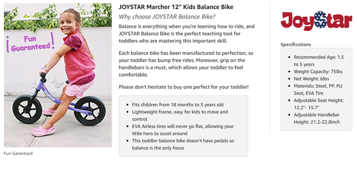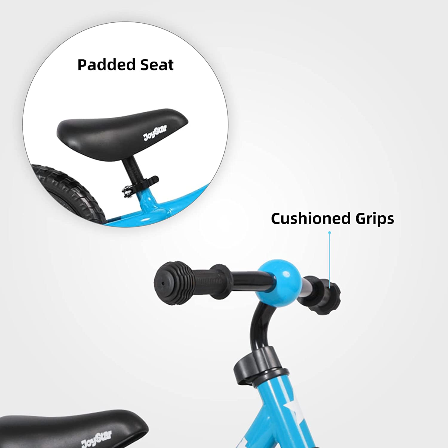 - ❤BEST GIFT FOR KIDS - JOYSTAR Marcher Kids Balance Bike is a pedal-free beginner bike that allows toddlers to focus on balance. With a low-rise frame, EVA foam wheels, soft rubber grips and a soft saddle, this is the best starter bike you can give any budding biker to create the ultimate first ride.