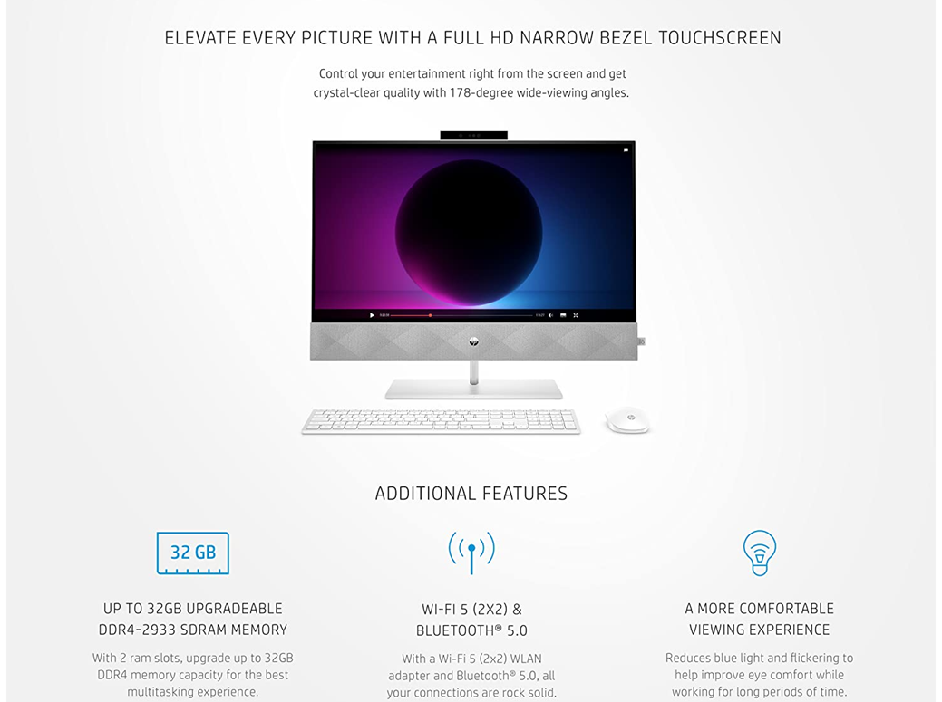 POWER MEETS PERFORMANCE – Leading-edge performance and cutting-edge style give this All-in-One PC the means to tackle demanding projects and enjoy movie marathons, all while looking good anywhere you put it