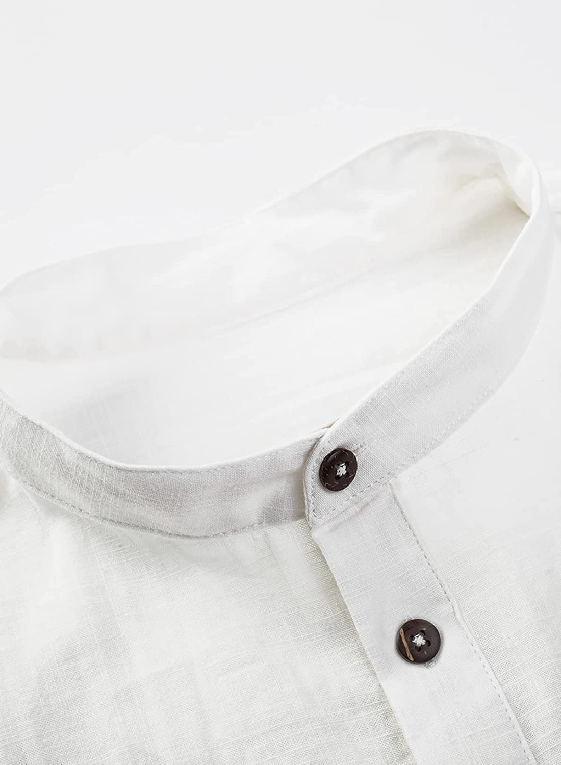 Fashion Design: Casual henley collar shirts for men,band collar, in a casual stylish, it has a button at the cuffs so you can adjust the length of the sleeves flexibly. Usually white shirt and blue shirt is the choice of most people,it is summer's color.