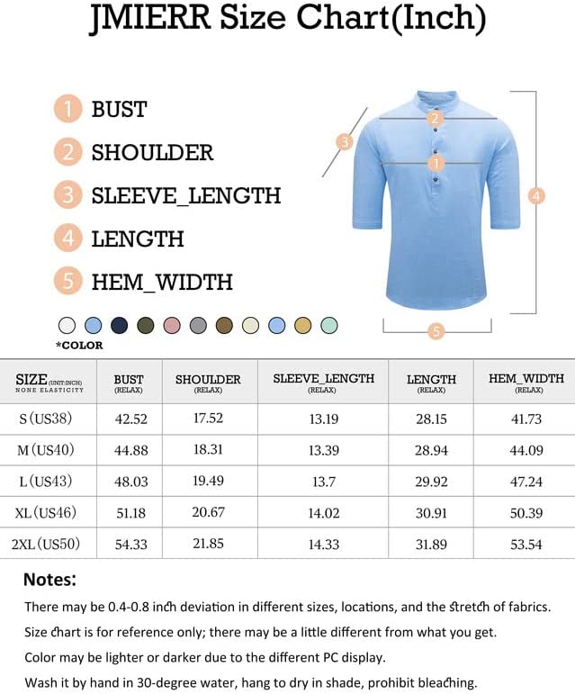 Fashion Design: Casual henley collar shirts for men,band collar, in a casual stylish, it has a button at the cuffs so you can adjust the length of the sleeves flexibly. Usually white shirt and blue shirt is the choice of most people,it is summer's color.
