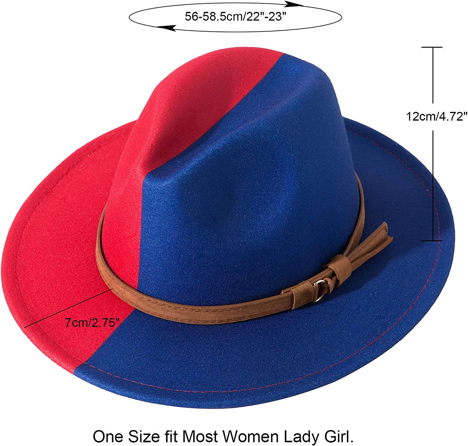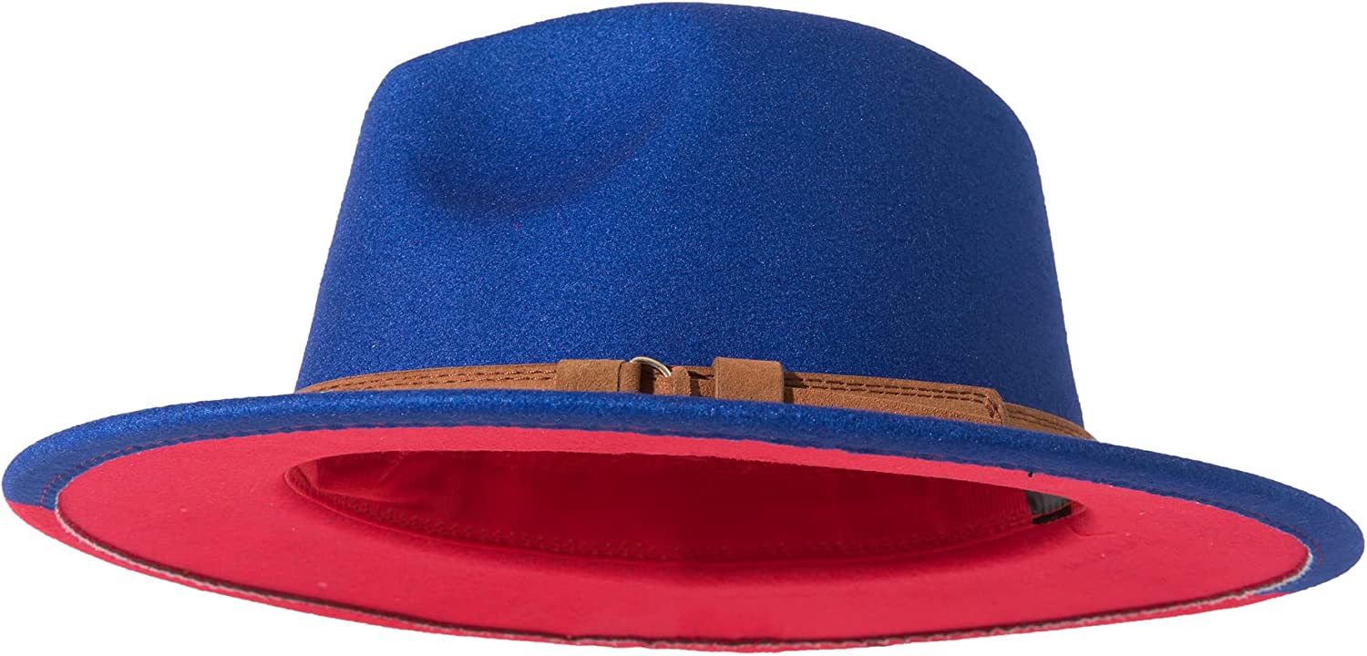 Lanzom Women Men Two Tone Wide Brim Fedora Hats Classic Felt Panama Hat with Belt Buckle