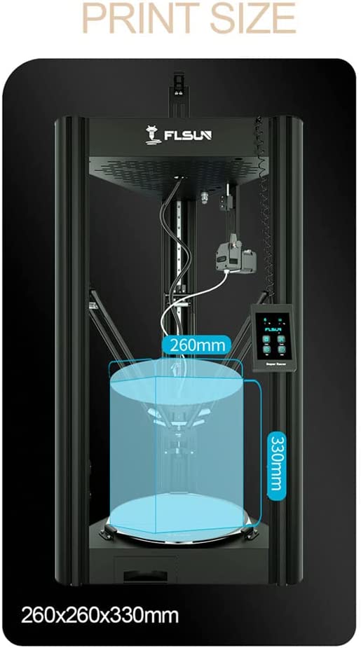 200mm/s High-Speed Printing & 2800+ mm/s² acceleration & Three-Axis Linkage Technology; Equipped 3 x 48W High-Power stepper motor and Three-axis linkage technology support a normal printing speed of Flsun Super Racer (SR) 3D printer up to 200mm/s and 2800+ mm/s² acceleration, enjoy instant high speed printing while maintaining the same molding precision quality, 200% faster than industry standard, you can save more than half of printing time.