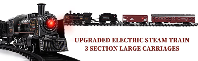 - You will play in any occasions: is fit for most family Christmas trees and any table during Festival ,Assemble the modular rail track parts into your own railroad shape and layout,then place the hooked train sets on the tracks precisely, finally turn on the switch, the train set will move on the track steadily, smoothly. Great gift for birthday and christmas gift for boys & girls.