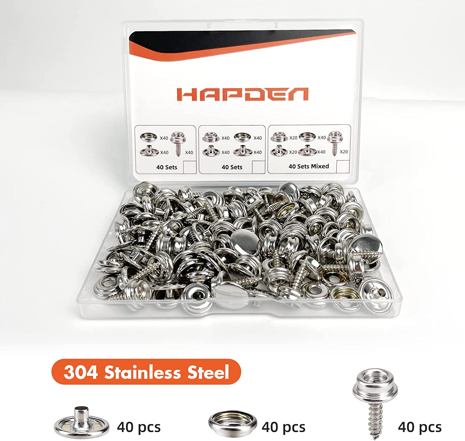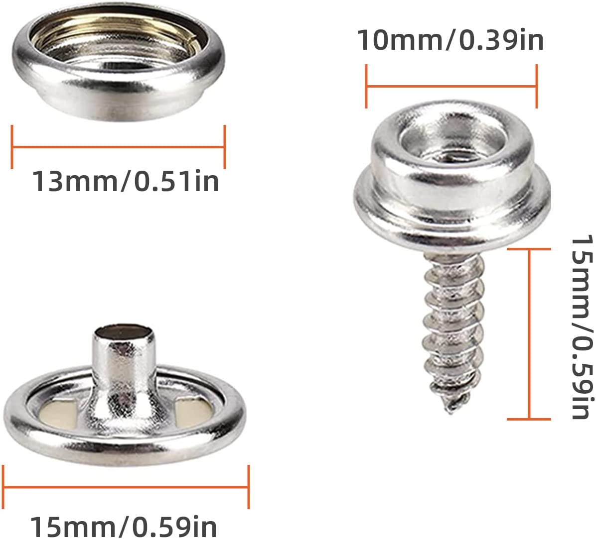 【Wide application】button snap kit are widely used in canvas, tarpaulin, tents, awnings, canvas, clothing, leather, furniture, lawn furniture, etc. snap fastener kit Can be attached to surfaces. Suitable for indoor or outdoor use.
