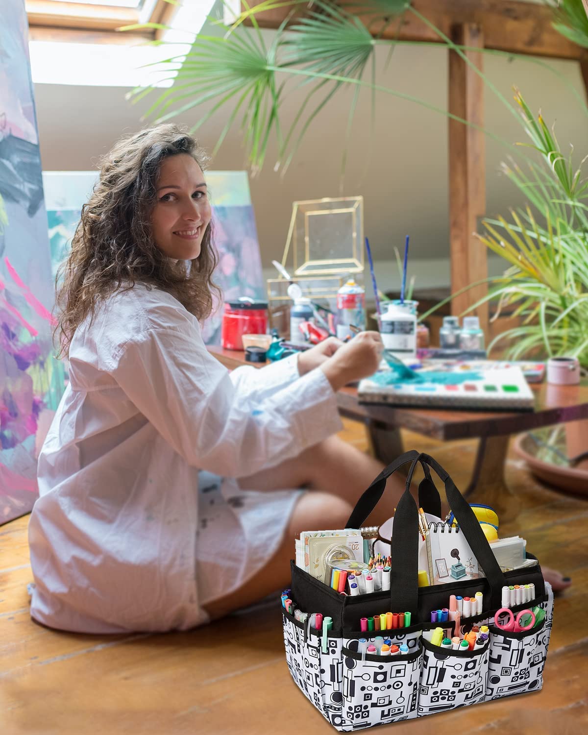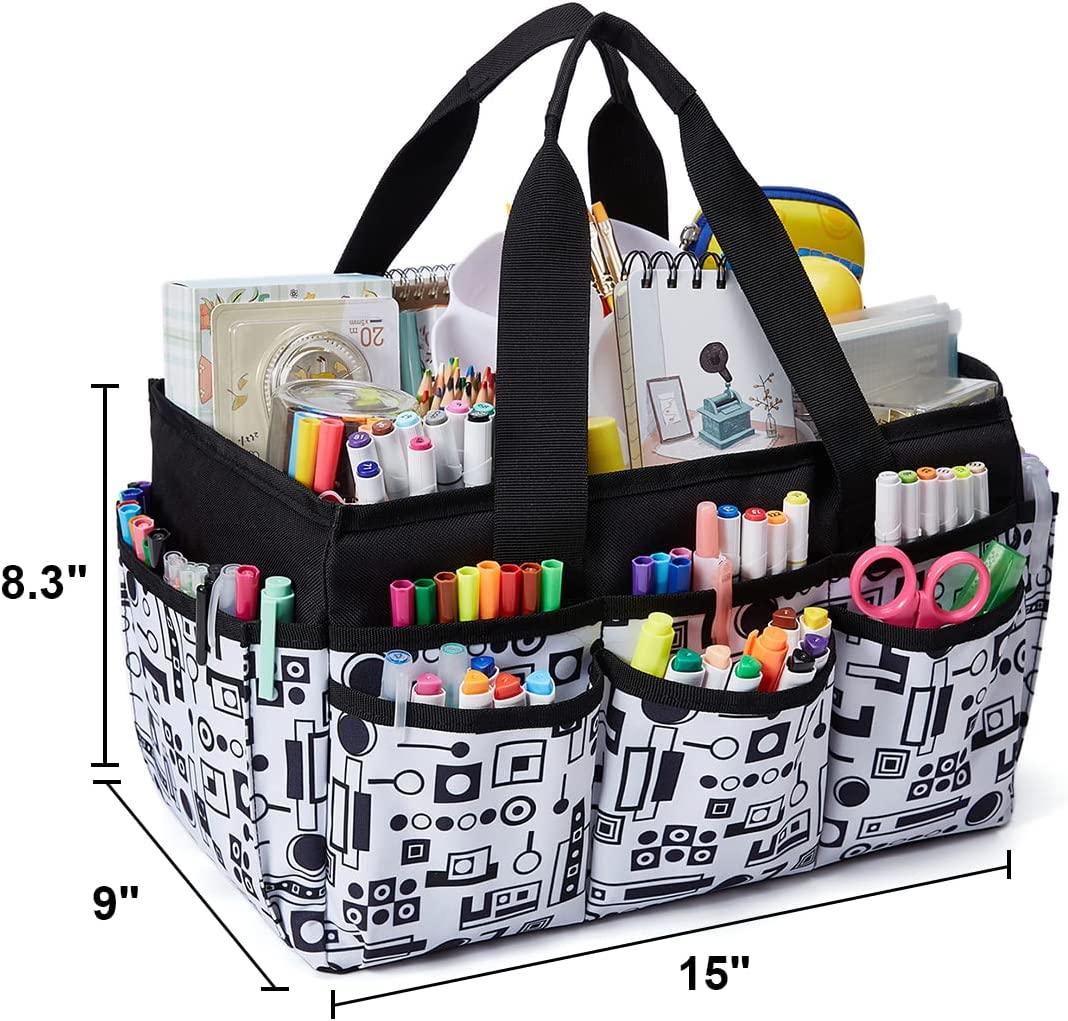 Craft Organizer Tote Bag, Art Caddy Organizer with Handles,Multi-Functional Craft Caddy for Sewing & Scrapbooking Supplies,Travel Art Box JOSIVIKY (White)
