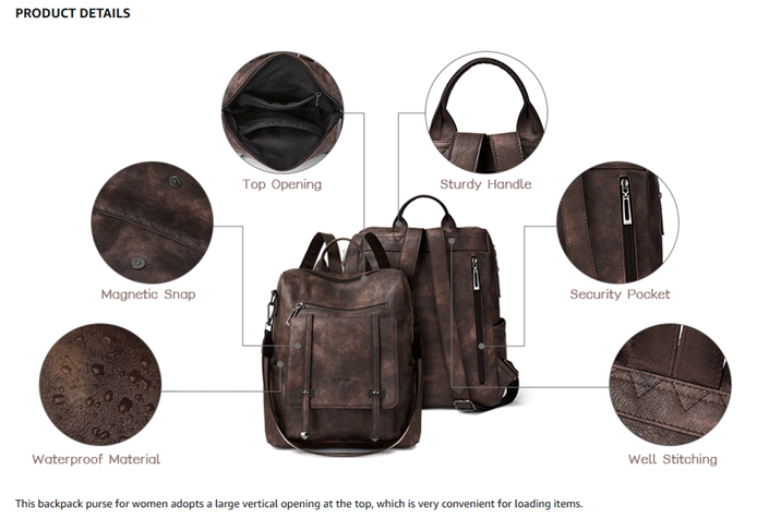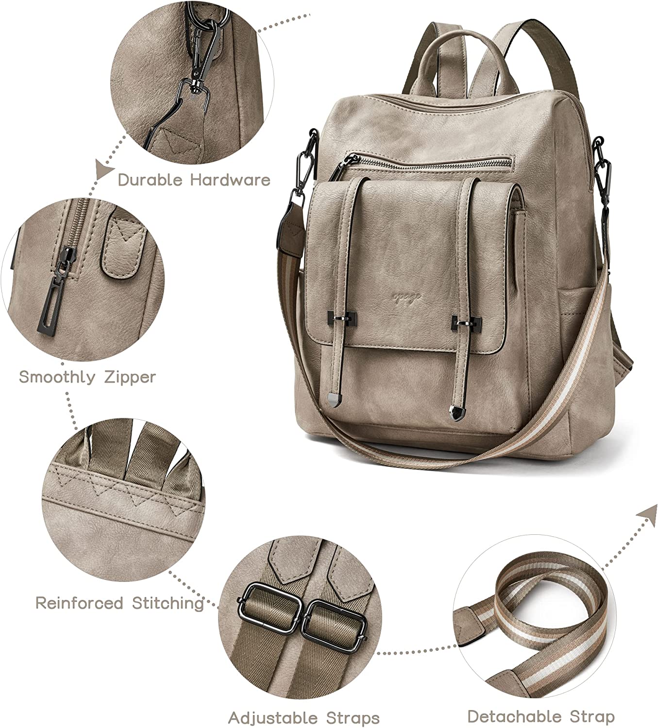 • 【HIGH-QUALITY MATERIAL】The backpack purse for women is made of sturdy and soft PU leather, zippers slide nicely and straps are very durable, comfortable and good quality. The snaps are magnetic and all the stitching has been done well.