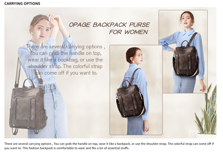 【CARRY OPTIONS】This backpack purse for ladies has 3 options to carry it. You can grab the handle on top, wearing it like a backpack, or using the shoulder strap. The colorful detachable strap can come off if you don't like it.
