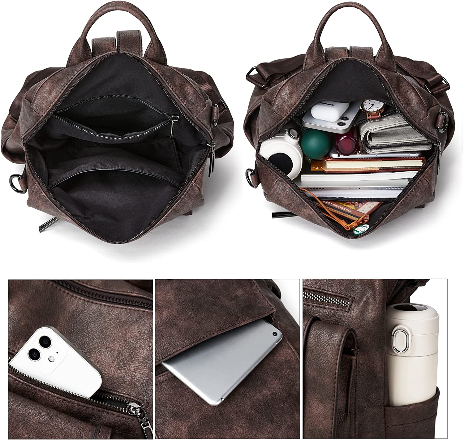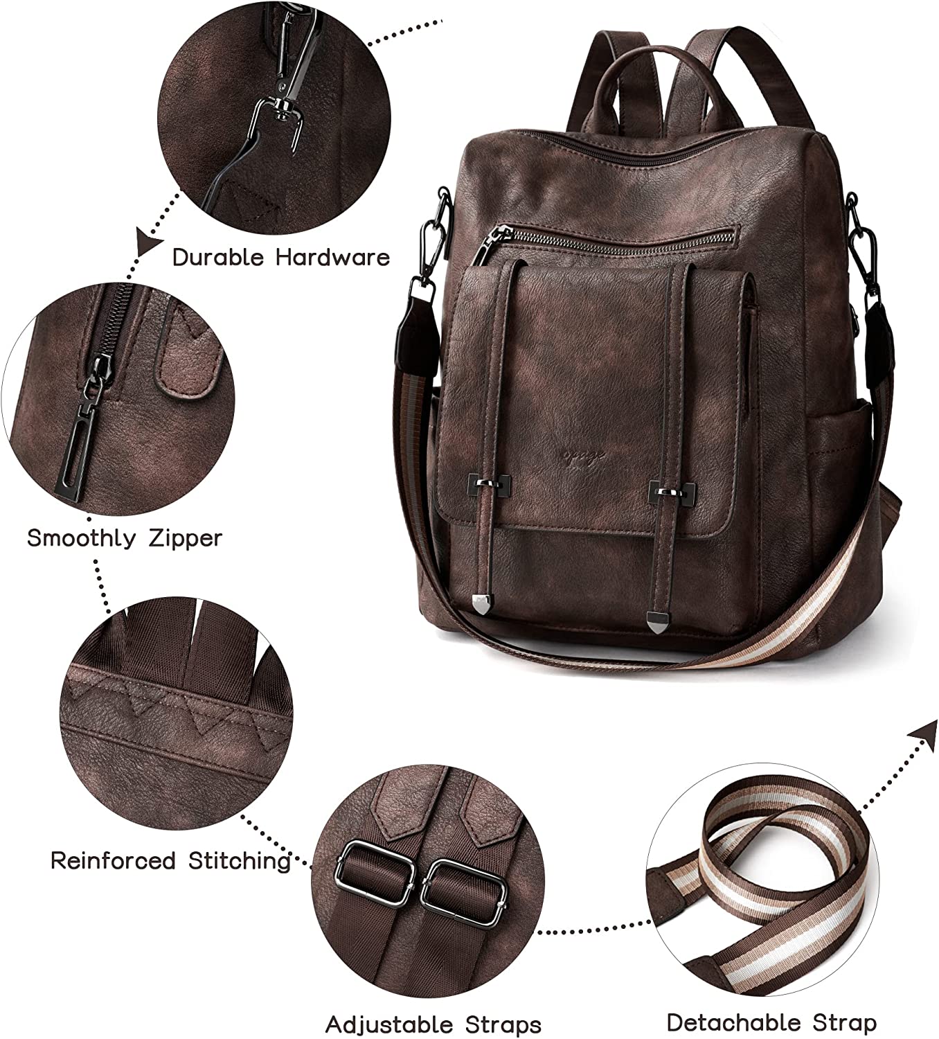 【HIGH-QUALITY MATERIAL】The backpack purse for women is made of sturdy and soft PU leather, zippers slide nicely and straps are very durable, comfortable and good quality. The snaps are magnetic and all the stitching has been done well.