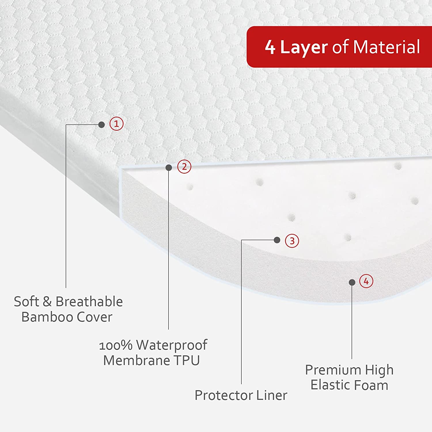 Breathable & Soft Foam: The ultra-soft high density foam with perforations will keep air flow and reduce the risk of suffocation. At the same time, there is a protector liner on the outside of our premium high density foam to prevent dust from entering the perforations which can give your baby a long-term comfortable experience.