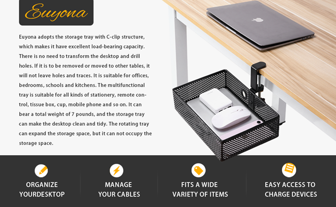 | Included Components | Mesh Desk Organizer, C-clamp, Allen wrench, Socket head cap screw |
