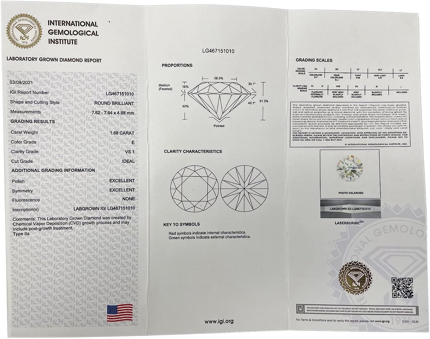 1.68 Carat Lab Grown Diamond IGI Certified Center Stone
