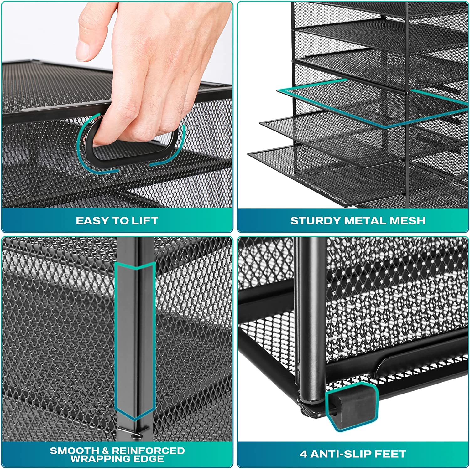 【Not easy to be bent】Made of sturdy metal steel,the mesh desk file organizer is sturdy and well-constructed by 3 reinforced fixed rods