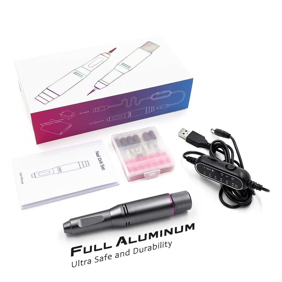Portable & Durable: Thanks to its compact and lightweight full-metal design. Fuegobird electric nail drill set is easy to carry with, allowing you to do nail art anytime, anywhere. You can power it with any USB socket, such as a power bank, laptop, or AC adapter.