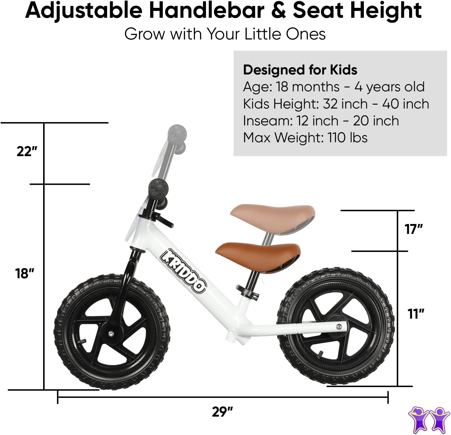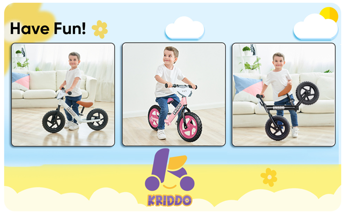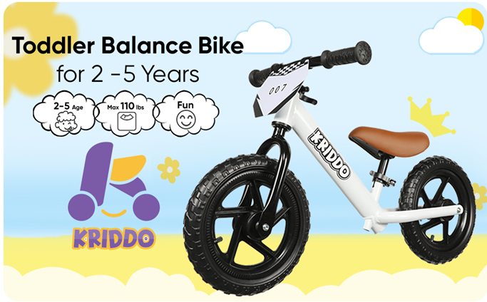 We developed the KRIDDO Balance Bike for ages 18 months to 5-years old to help young boys and girls learn about bike riding by pushing themselves along and gliding without relying on pedals. Fun and easy to use on all types of terrain, these easy-push balancing bikes even come with a removable customize plate, kids can draw anything on it or make it their own plate with stickers.