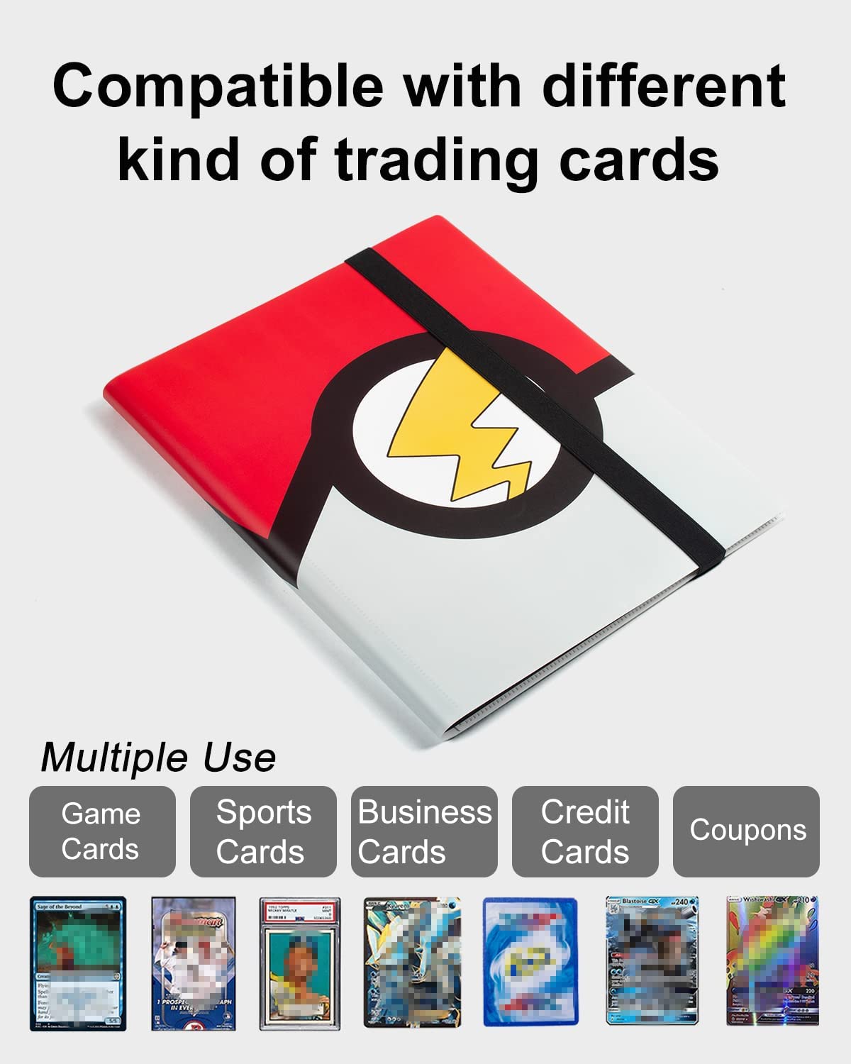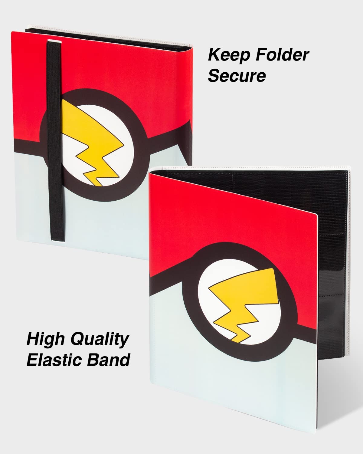 SECURE - Side-loading pockets designed to keep your cards securely in place. The outer cover of the folder is very sturdy and cannot bend under the pressure of the elastic closure. Meanwhile, a high-quality elastic band fastener keeps the trading card album closed. No cards will spill.