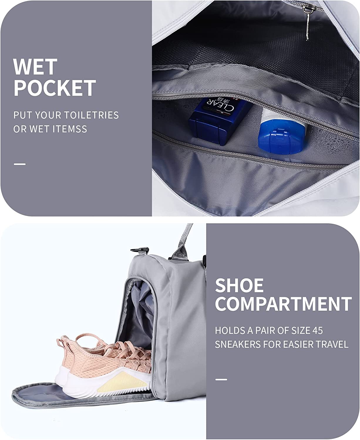 Gym Bag Womens Mens with Shoes Compartment and Wet Pocket,Travel Duffel Bag for Women for Plane,Sport Gym Tote Bags Swimming Yoga,Small Waterproof Weekend Overnight Bag Carry on Bag Hospital Holdalls