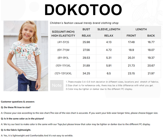 Material:Dokotoo girls' tops, tees & blouses is made with high-quality fabric, breathable,soft and take care your girls skin.