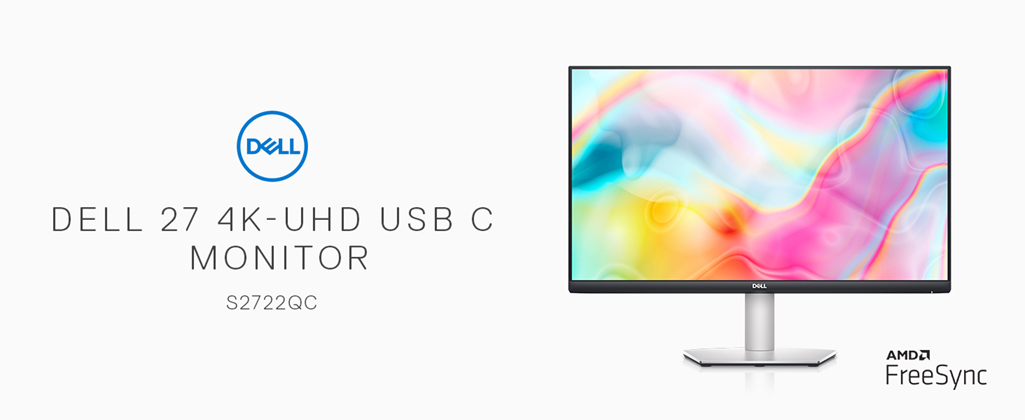 The Dell S2722QC usb-c monitor is designed with an elegant 27-inch screen boasting outstanding visuals. This 27-inch 4k monitor has integrated dual 3W speakers so you can listen to whatever you want without having to purchase speakers. The In-Plane Switching (IPS) technology together with 99% sRGB color coverage lets you see extraordinary colors across a wide viewing angle. The AMD FreeSync technology features up to 60Hz refresh rate so you can enjoy a smooth, tear-free experience. The ComfortView feature reduces harmful blue light emissions so you can stay online longer without getting eye fatigue. Charging and connecting your storage devices, mobile phones and other peripherals just got easier with a conveniently placed, quick-access USB 3.2 Gen 1 Type-A port.