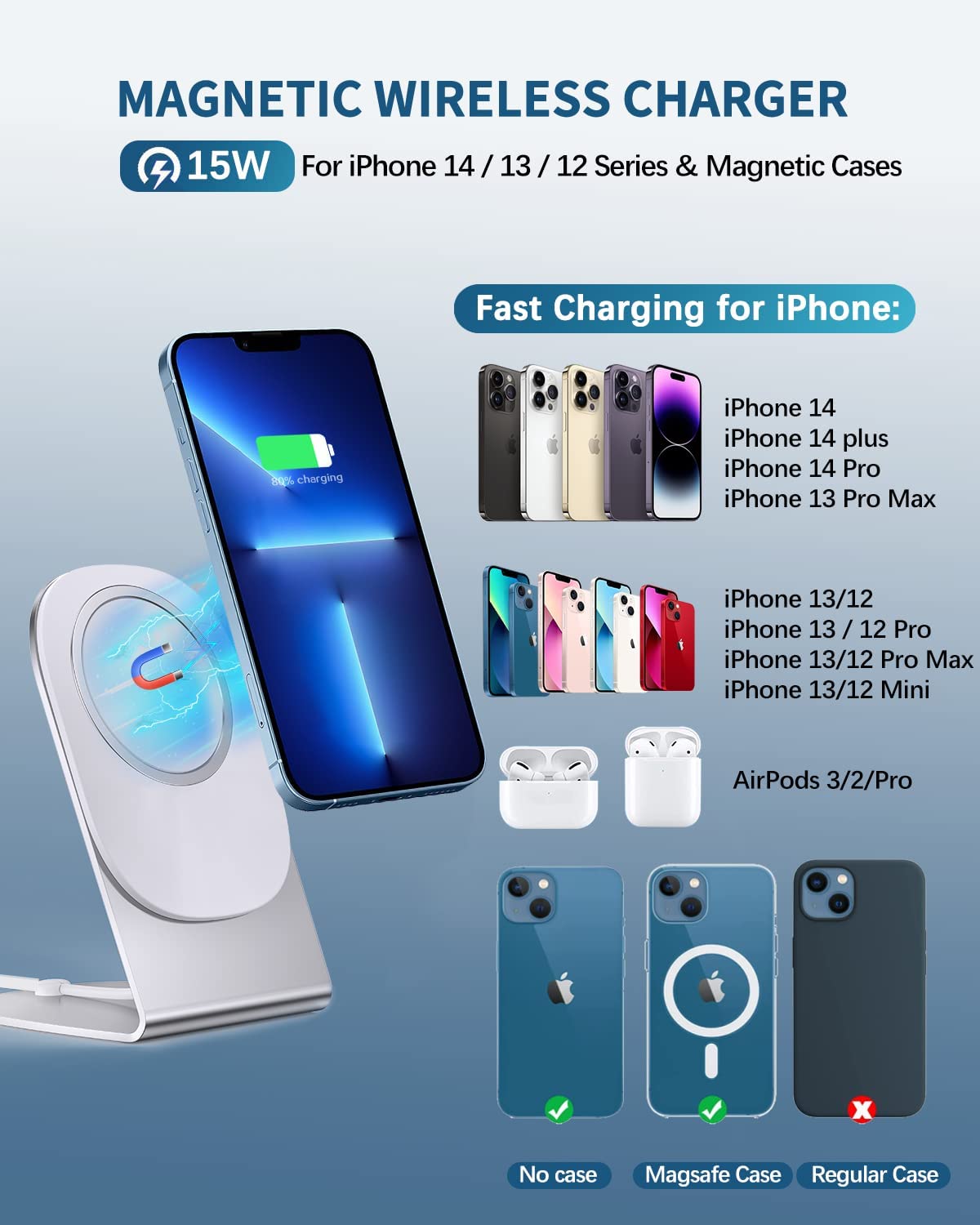- Note: iPhone12/13/14 series magnetic charging doesn’t support ordinary phone cases