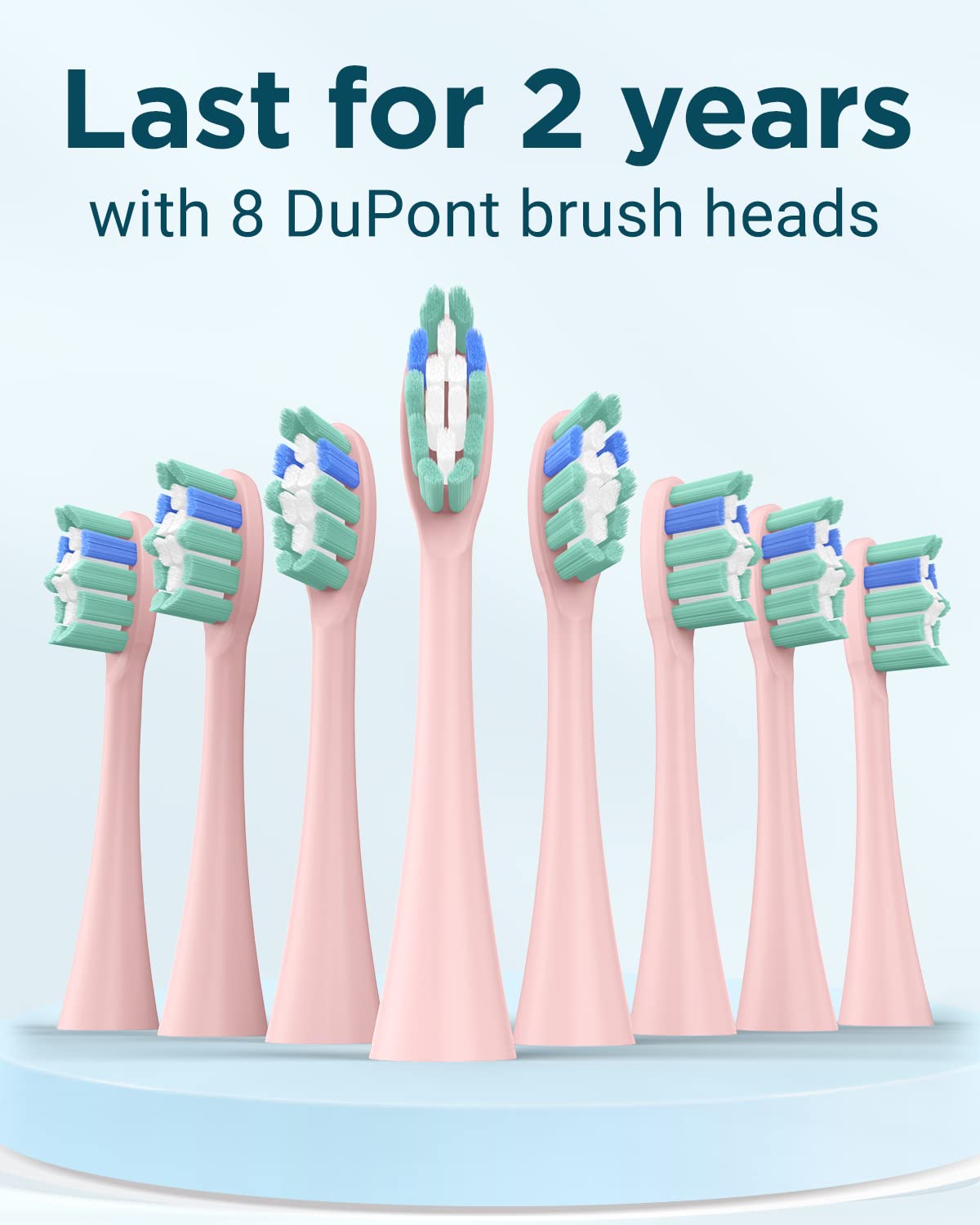 - One Shopping for 2 Years: The rechargeable sonic power toothbrush for adults can work for 2 years with 8 premium DuPont adults electric toothbrush heads. And offered electric power toothbrush travel case and tooth brushes holder adding extra value to your order.