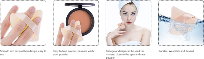 【Suitble Size】Our triangle body powder puff, each pure powder puff measures about 7cm, the normal size can fit your hand well, each makeup puff comes with 1 strap for you to hold well and easier to use the powder applicator, the triangle shape makes the makeup on T-zone easier.