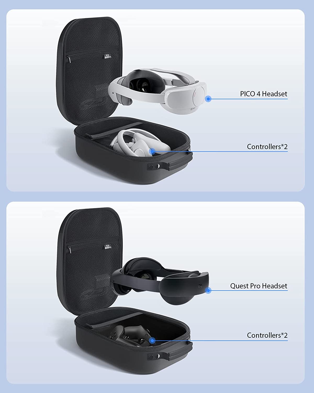 ☑️Shockproof & Waterproof - The top cover of the storage case is made of PU material, making it truly and completely waterproof. The button cover is made of durable EVA material, which is hard, shock, and dust resistant. Provides all-around protection for your Oculus Quest 2.