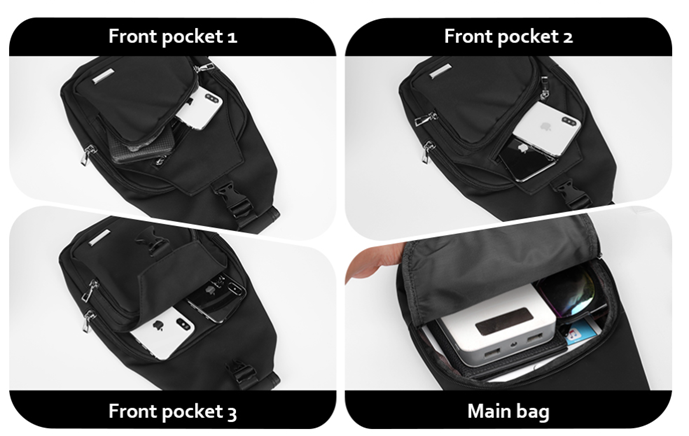 Large Capacity: Size: 13.8 x 6.7 x 3.6 inches.Shoulder bag with multiple compartments and pockets including a hidden security pocket, mobile phone pocket,big pockets with room for all your belongings. Sling backpack can effectively keep your belongings, such as cosmetics,tissues,keys, mobile phones,ipad mini,passports,water bottless,umbrellas,etc.