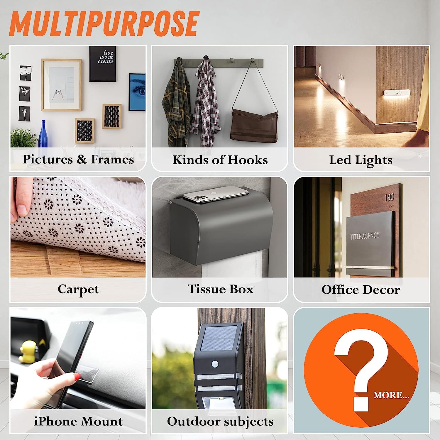 - 【Strong Adhesion】: Our heavy duty double sided tape is made of premium acrylic gel via advanced nano tech with great holding power. Getting your mounting activities done fast and securely without drilling and nails, a must have for dorm room essentials.
