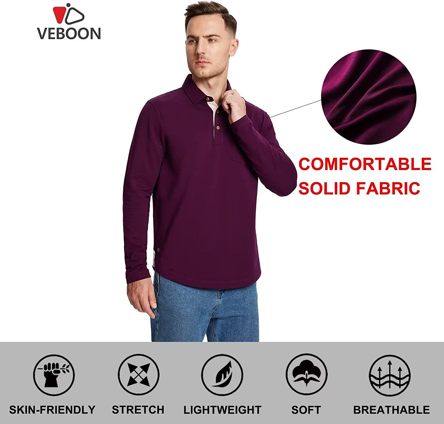 SIZE AND COLOR: Casual mens long sleeve polo shirts, based on classic fit u.s size: S, M, L, XL, XXL, 3XL with various colors: black white grey green navy blue purple that you can have different look everyday.