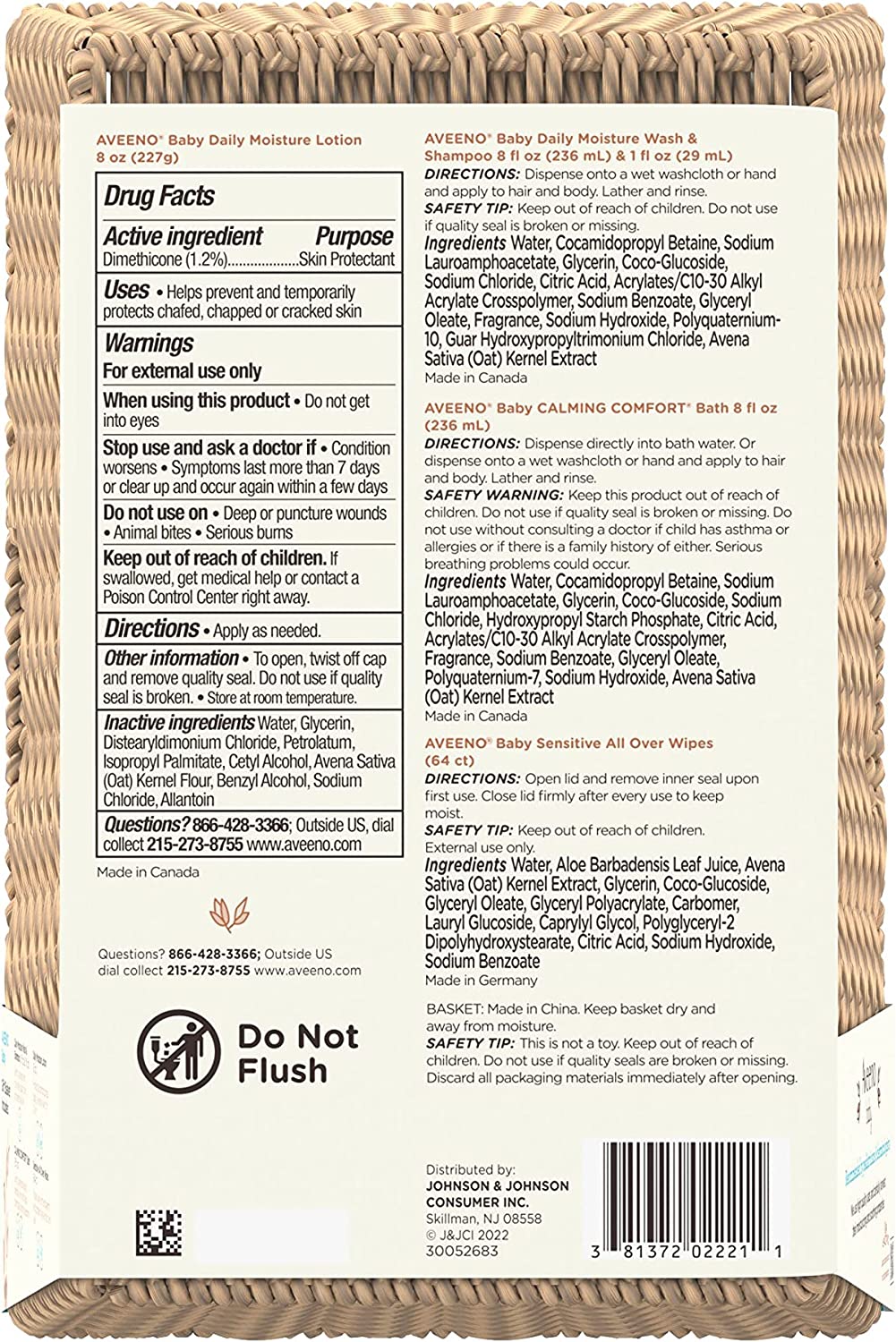 Aveeno Baby Welcome Little One Gift Basket, Baby Skincare Set with Baby Body Wash & Shampoo, Calming Bath Wash, All Over Baby Wipes, & Daily Moisturizing Lotion, 5 Items