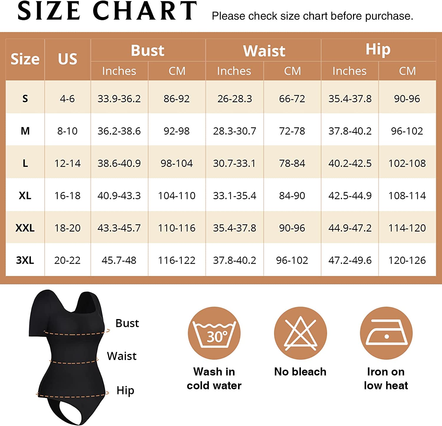 • CHOOSE THE BEST SIZE: Please measure your waist(1 inch above navel), breast, hip circumference, then refer to the left size chart picture to choose the best suitable size for you before buy.