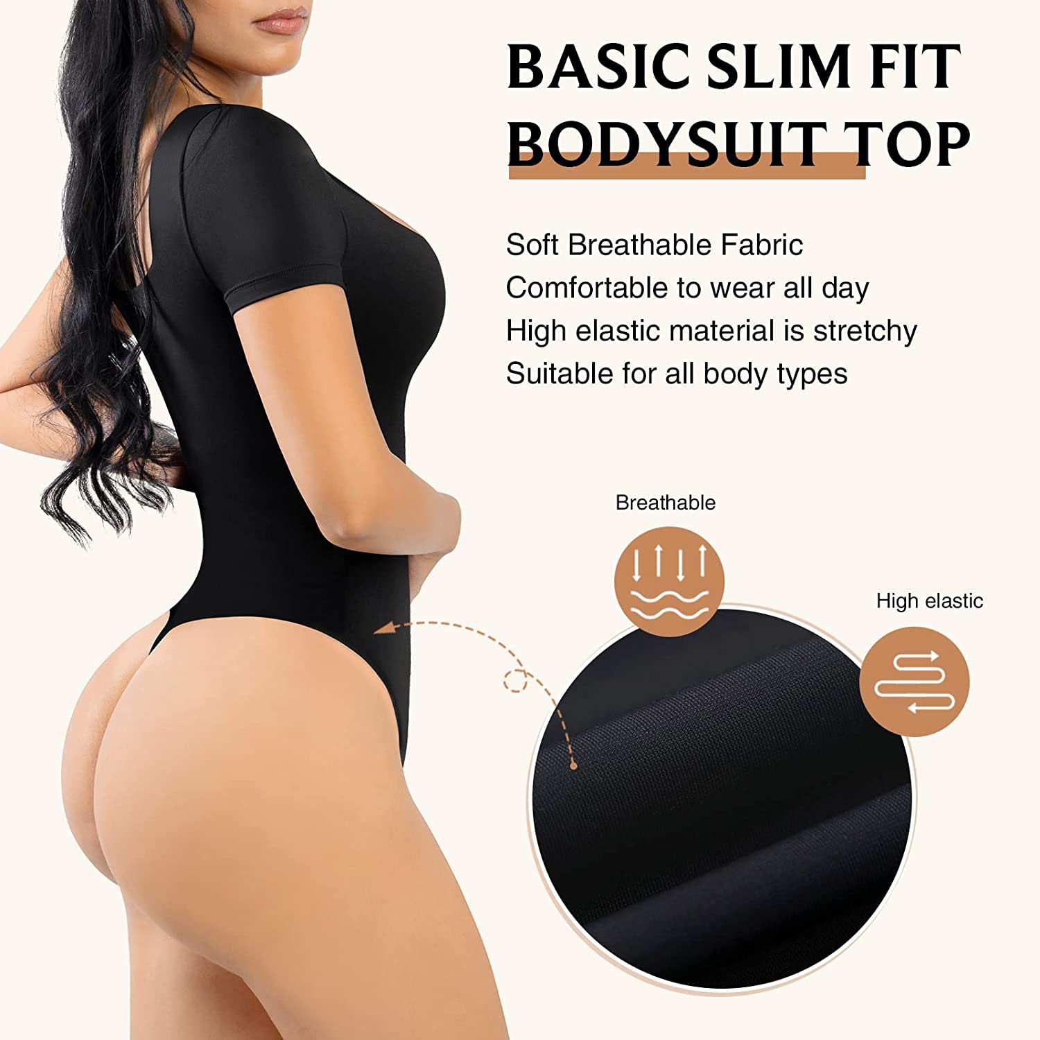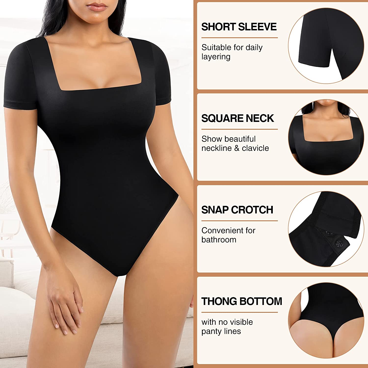 • CONVENIENCE DESIGN: There are 3 small Snap closure on the bottom for closure of the bodysuit. Let you elegantly enter and exit various occasions. The 3 snaps at the crotch, whether to go to the bathroom or dress up and down, it has great convenience. Bodysuit can show your slim and natural look and you can wear it all day.